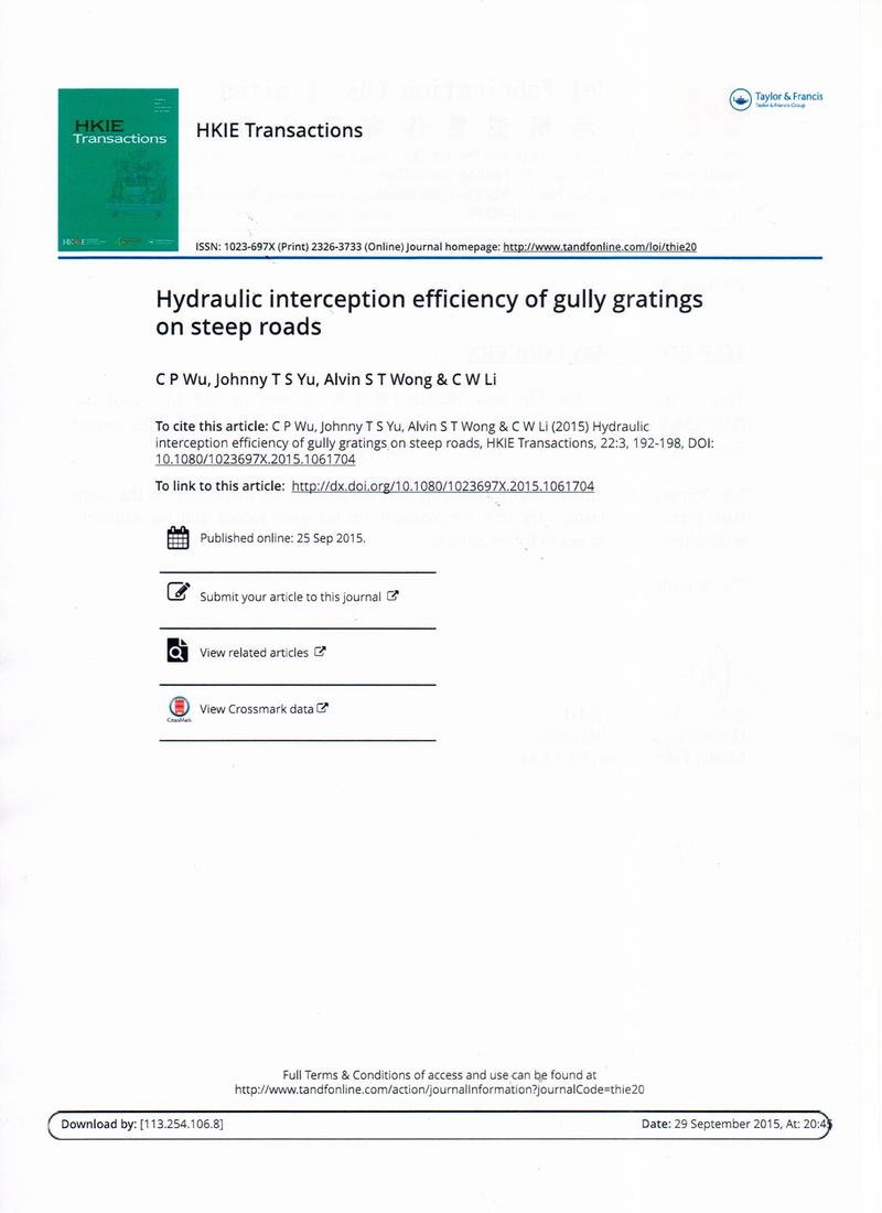 | 2013-15 | Physical Modellings for the Inlet Structure at Cresent Garden and the Overflow Weirs beside the Storage Tank of Happy Valley Underground Stormwater Storage Scheme | DP/DSD |